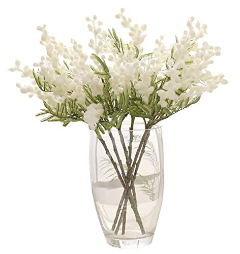 Kugusa ミモザ アカシア 造花 アーティフィシャル フラワー 枝垂れ枝 春 ブライダル 装飾 (白色【7本】)