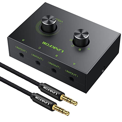 LiNKFOR 4ポート オーディオスイッチャー 4入力1出力/1入力4出力 3.5mm ヘッドフォン スイッチ スピーカー セレクター 切替器 スプ