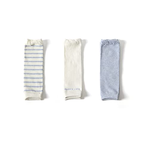 [RICISUNG] 3足組 レッグウォーマー ベビー 足首ウォーマー 赤ちゃん服 コットン (青&ホワイト)