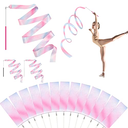 【商品仕様】サイズ:リボン長さ:200cm、棒長さ:29cm、リボン幅:4.5cm。12色12本新体操リボンが含まれており、すべての大人と子供にとって魅力的です。