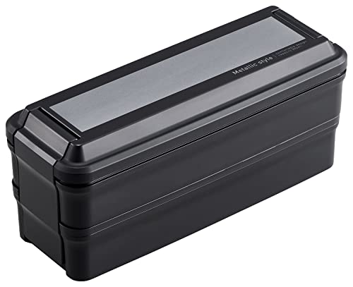OSK 弁当箱 メタリックスタイル ランチボックス2段 (仕切付) ブラック 日本製 BLW-38D
