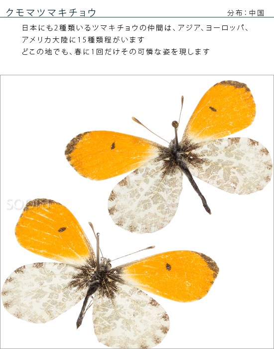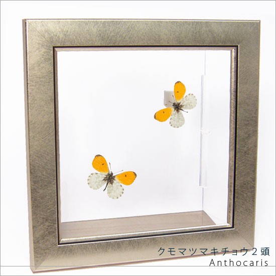 昆虫標本 蝶の標本 クモマツマキチョウ 2頭 メタリック調ライトフレーム