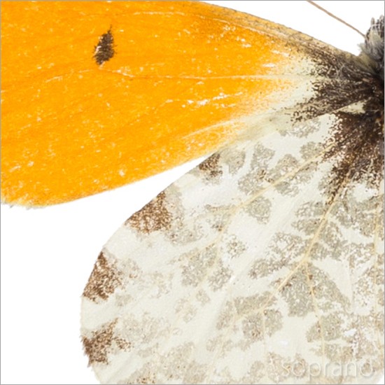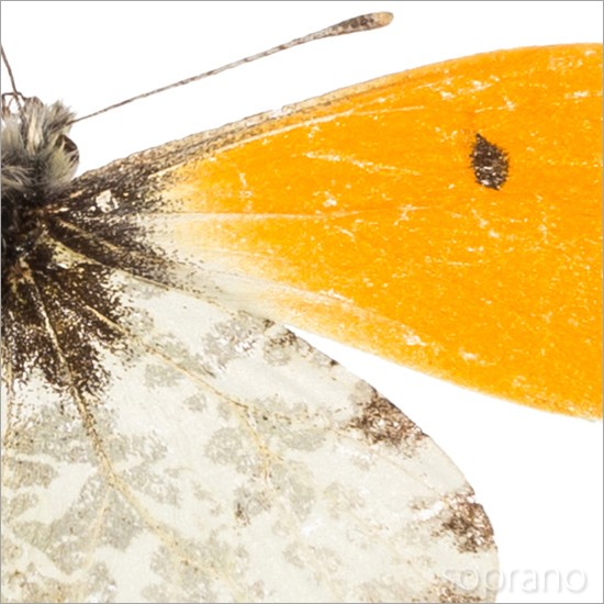 ●「昆虫界の職人」とも言えるプロの展翅人が、メタル風にデザインされたシャープな木製フレームに2頭のクモマツマキチョウ を美しくディスプレイした新感覚の標本です。