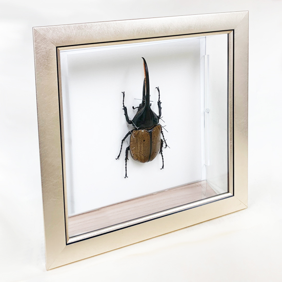 フレーム正面に加え、上下左右ともにスケルトンタイプの透明なアクリル板を使用しておりますので、ヘラクレスオオカブトムシの体全体をより詳細に鑑賞することが出来ます。