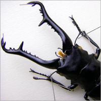 | 特徴 | | ギラファノコギリクワガタは世界最大のクワガタとして有名で、ギネスサイズは125mmと言われています。名前のギラファはキリンの意味で、その長い大アゴからきています。 | | 分布 | | インドネシア | | | | | | |
