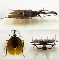 バイオリンムシはマレーシア等の熱帯雨林に生息するその名の通りバイオリンの様な形をしたユニークな昆虫です。木々の僅かな隙間でも入れるように、横から見ると薄っぺらいです。