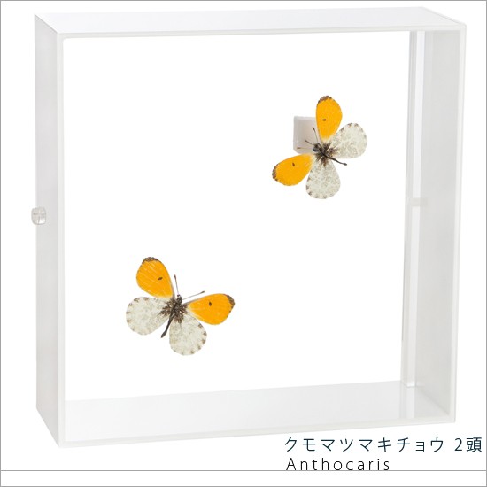 昆虫標本 蝶の標本 クモマツマキチョウ 2頭 アクリルフレーム 白