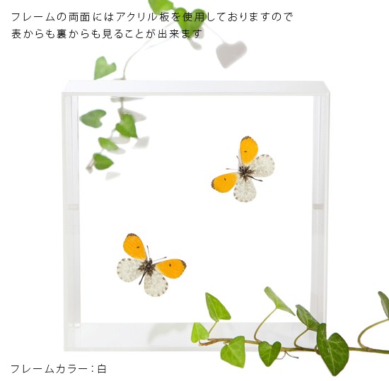フレームの両面にはアクリル板を使用しておりますのでチョウの翅の色柄を表からも裏からも見ることが出来ます。