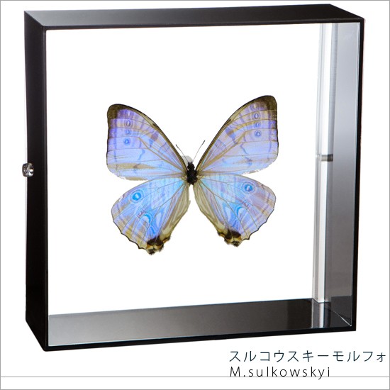 昆虫標本 蝶の標本 スルコウスキーモルフォ アクリルフレーム 黒
