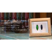 ●「昆虫界の職人」とも言えるプロの展翅人が、メタル風にデザインされたシャープな木製フレームに2匹のツマアカタマムシを美しくディスプレイした新感覚の標本です。