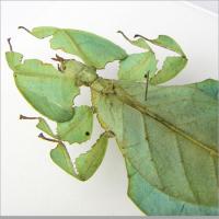 コノハムシはナナフシに近い仲間で、木の葉に擬態している昆虫としてとても有名です。風が吹いたりすると体をゆすったりして、その擬態は見事というほかありません。