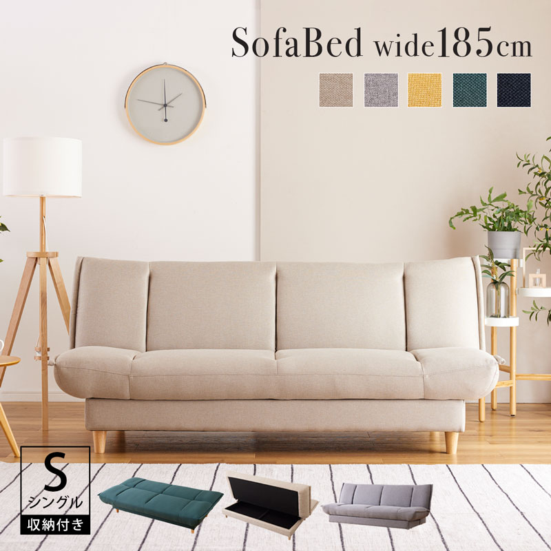 ソファベッド ソファーベッド 3人 3人掛け 収納 収納付き シングル ベージュ グレー 黄 イエロー グリーン 緑 ブラック 黒 シンプル 北欧 リテアS
