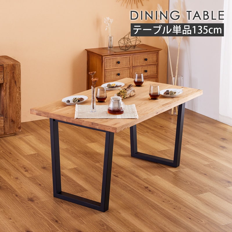 ダイニングテーブル 単品 食卓 食卓テーブル リビング 135cm 幅135 135 2人用 2人掛け 2人 4人用 4人掛け 4人 天然木 無垢 無垢材 オーク ナチュラル 木製 オイル塗装 ブラウン 北欧 モダン 北欧モダン おしゃれ シンプル 黒脚 カフェ