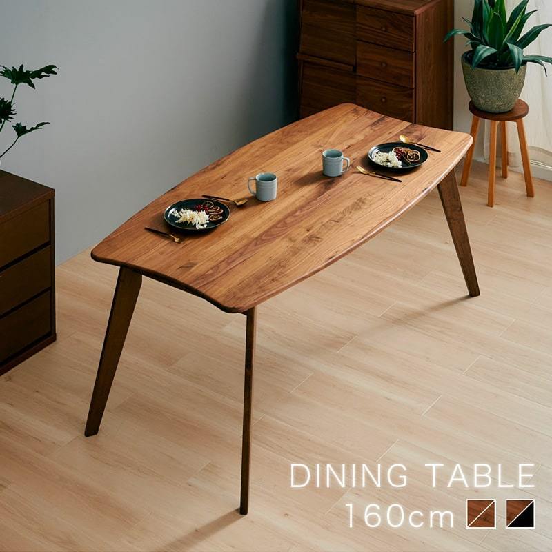 ダイニングテーブル 単品 無垢 角が丸い 変形 ウォールナット 160cm ウレタン おしゃれ 北欧 ナチュラル 4人用 4人 5人 カインドB