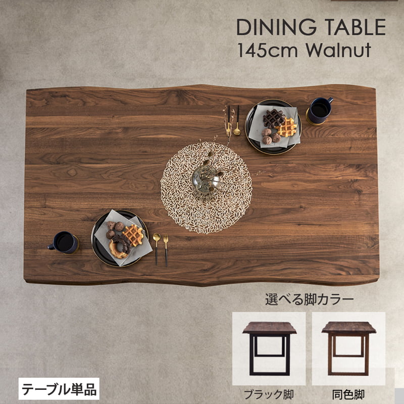 ダイニングテーブル 145cm 単品 4人 食卓 おしゃれ 北欧 モダン シンプル 一枚板風 無垢材 木製 ウォールナット ブラウン 黒脚 マドラス