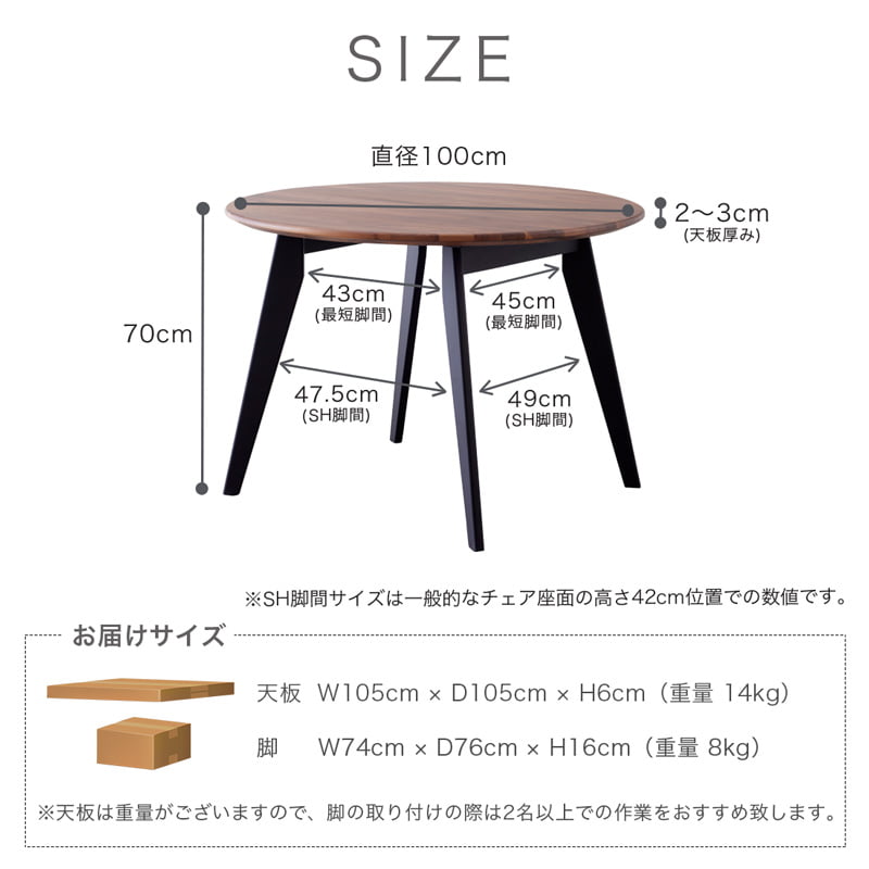 ダイニングテーブル 丸 円卓 テーブル 100cm 4人 4人掛け 円形 天然木 木製 無垢 ウォールナット ブラウン おしゃれ モダン 北欧 カインドC
