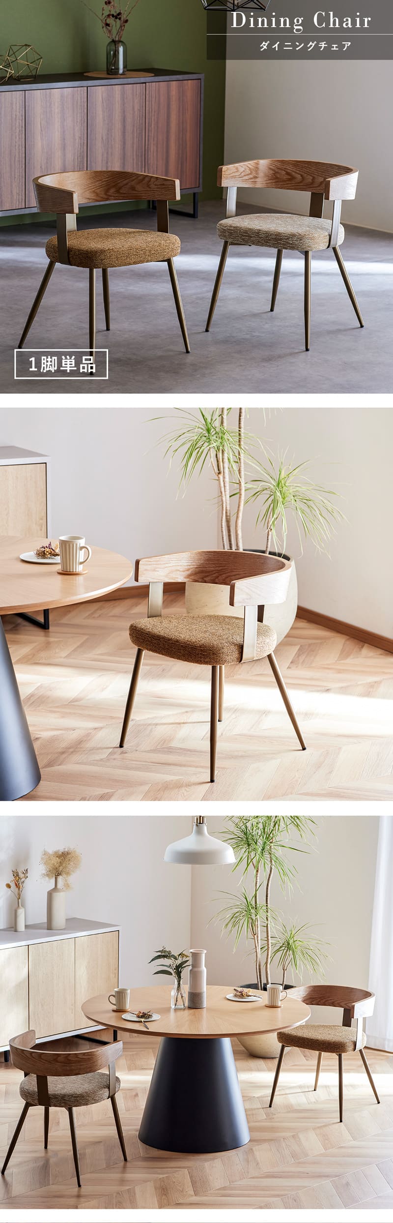 ダイニングチェア 1脚 単品 チェア チェアー アームチェア 椅子 肘付き オーク 真鍮風 ファブリック ヴィンテージ モダン 北欧 おしゃれ 7030