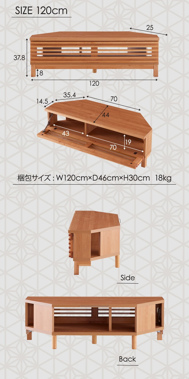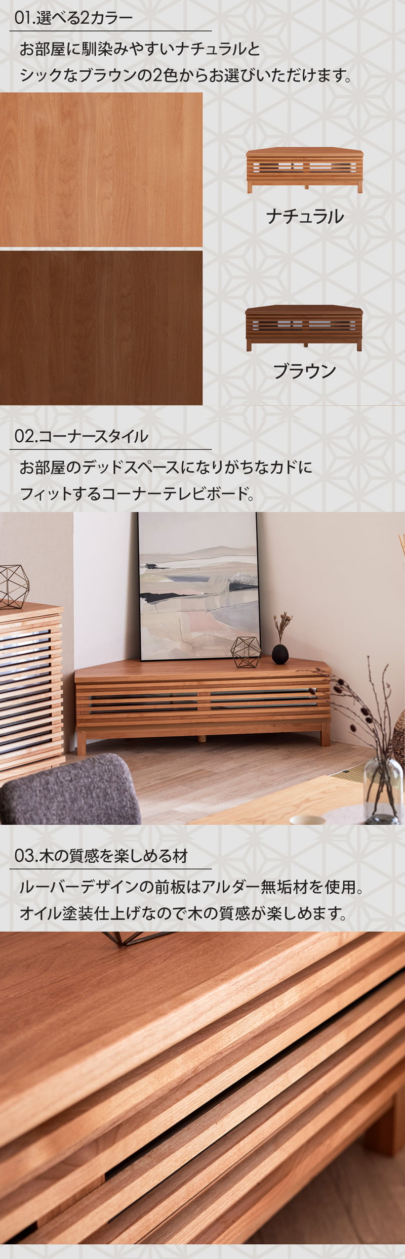 コーナーテレビ台 120cm ローボード テレビボード スイングコーナー リビング収納 ルーバーデザイン おしゃれ モダン ブラウン ナチュラル 国産 0544
