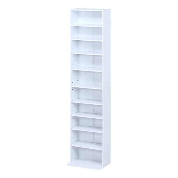 CD/DVDラック ホワイト W420×D190〜280×H1800 ラック 本棚 収納家具 リビング 書斎 ホームオフィス 不二貿易 インテリア家具 法人様限定