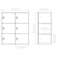 日本製 パーソナルロッカー 6人用 下置用 スチール製 W900×D450×H1050mm 2列3段 ブラック アッシュグレー 鍵付き ダイヤル錠 受注生産品