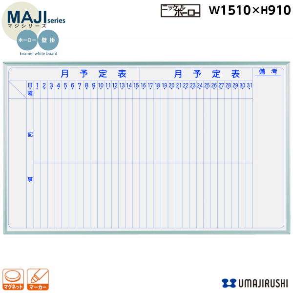 ホワイトボード 壁掛 月予定表 幅1500mm MH35M ホーロー マジシリーズ 馬印