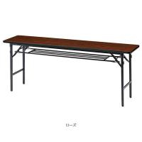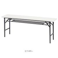 ミーティングテーブル 幅1800×奥行450×高さ700mm ソフトエッジタイプ 棚付 バネ式 折りたたみテーブル 長机 オフィス家具 藤沢工業 TOKIO 日本製