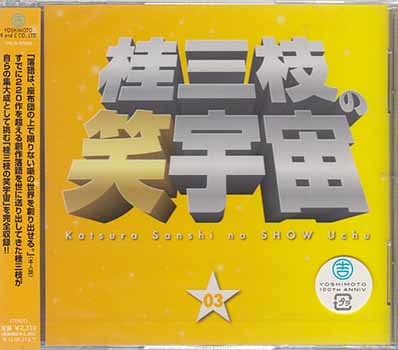 | タイトル | 桂三枝の笑宇宙03 | | 監督 | | | 出演者 | 桂三枝 | | 受賞・その他 | | | 発売日 | 2011年6月22日 | | 発売元・レーベル | よしもとアール・アンド・シー | | 仕様 | メディア形態 | CD | | リージョンコード | | | 言語 | | | 字幕 | | | 収録時間 | 60分42秒 | | JANコード | 4571366482466 | | 製品コード | YRCA-95004 |