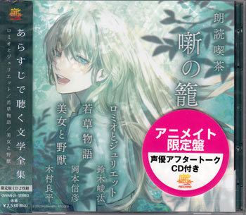 | 【ストーリー】 人気・実力派声優による”声の演技””プロの技”による朗読を堪能!日本近現代の名作小説や詩を、人気・実力ともに兼ね備えた 豪華声優人たちの朗読で味わうシリーズ第四期スタート。教科書で読んだことがある、長く愛され続ける日本の名作文学を厳選収録。 本作の朗読用に書き下ろされたオリジナルあらすじ台本。花を添えるのは人気・実力を兼ね備えるベテランから新進気鋭の 若手まで、バラエティに富んだ豪華声優陣!1巻に3作の作品を収録しました。 アニメイト限定盤には、ここでしかもらえない出演声優による特典ディスク「アフタートーク」CDを付属! 【収録内容】 ロミオとジュリエット 朗読:鈴木崚汰 若草物語 朗読:岡本信彦 美女と野獣 朗読:木村良平 【特典内容】 特典ディスク付き | |||||||||||||||||||||||||||||||||||