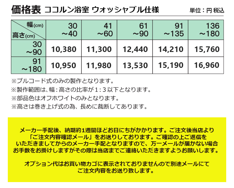 | 商品名 | ロールスクリーン ココルン浴室 ウォッシャブル仕様(洗える) オーダーサイズ