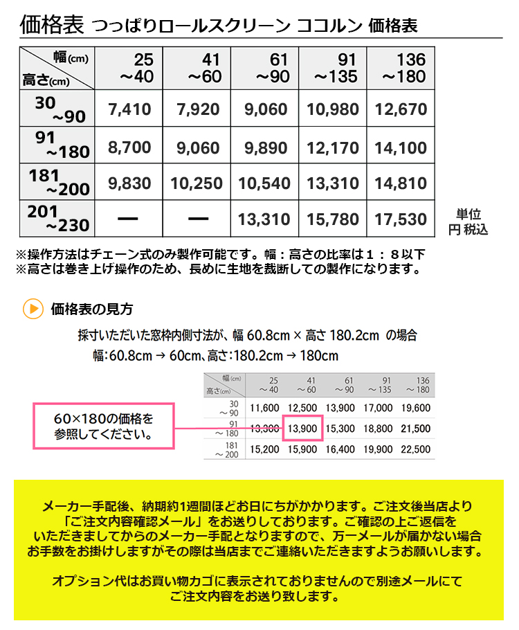 | 商品名 | つっぱりロールスクリーン ココルン ノンビス(洗えない) オーダーサイズ