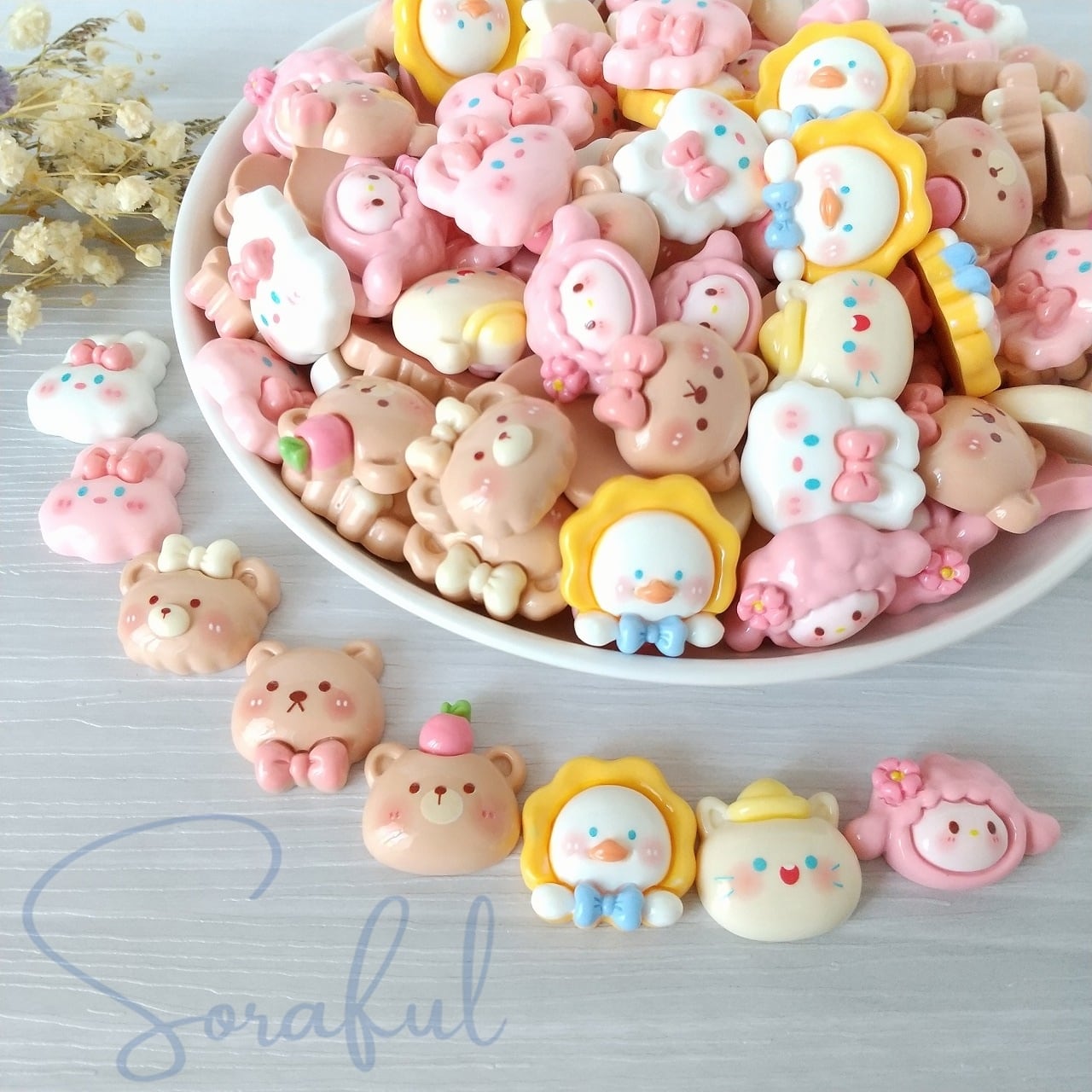 デコパーツ アニマルフレンズフェイス 動物 貼り付けパーツ 5個 D-0195