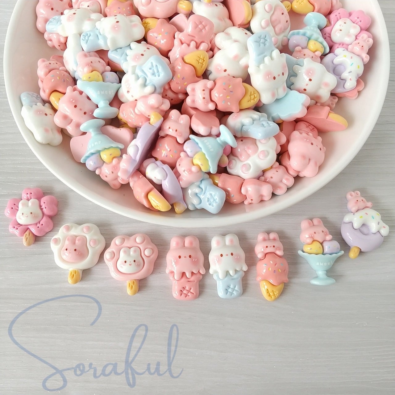 デコパーツ 可愛いデザートになったウサちゃん 貼り付けパーツ 5個 D-0203