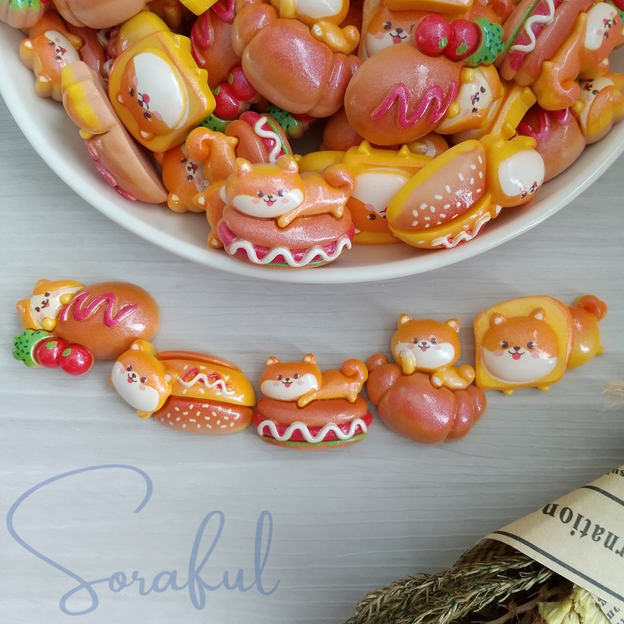 デコパーツ 柴犬パン わんちゃん ブレッド 貼り付けパーツ 5種セット D-0592