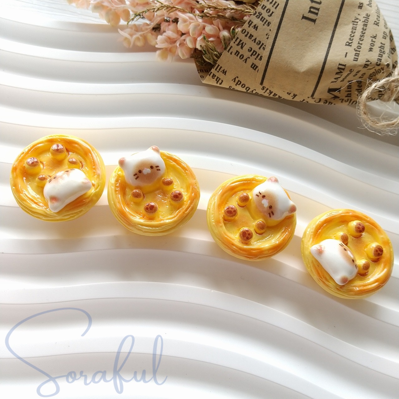 デコパーツ エッグタルトとマシュマロみたいな白ねこちゃん 4個