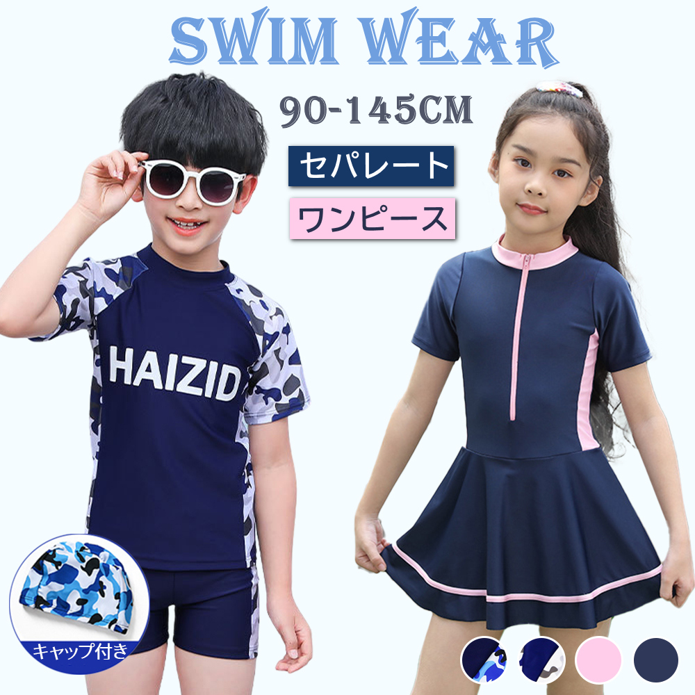 【在庫限定特価】キッズ 水着 セパレート ワンピース 子供水着 オールインワン ジュニア 女児 小学生 女の子 男の子 ト 水遊び 100cm 110cm 120cm 130cm 140cm