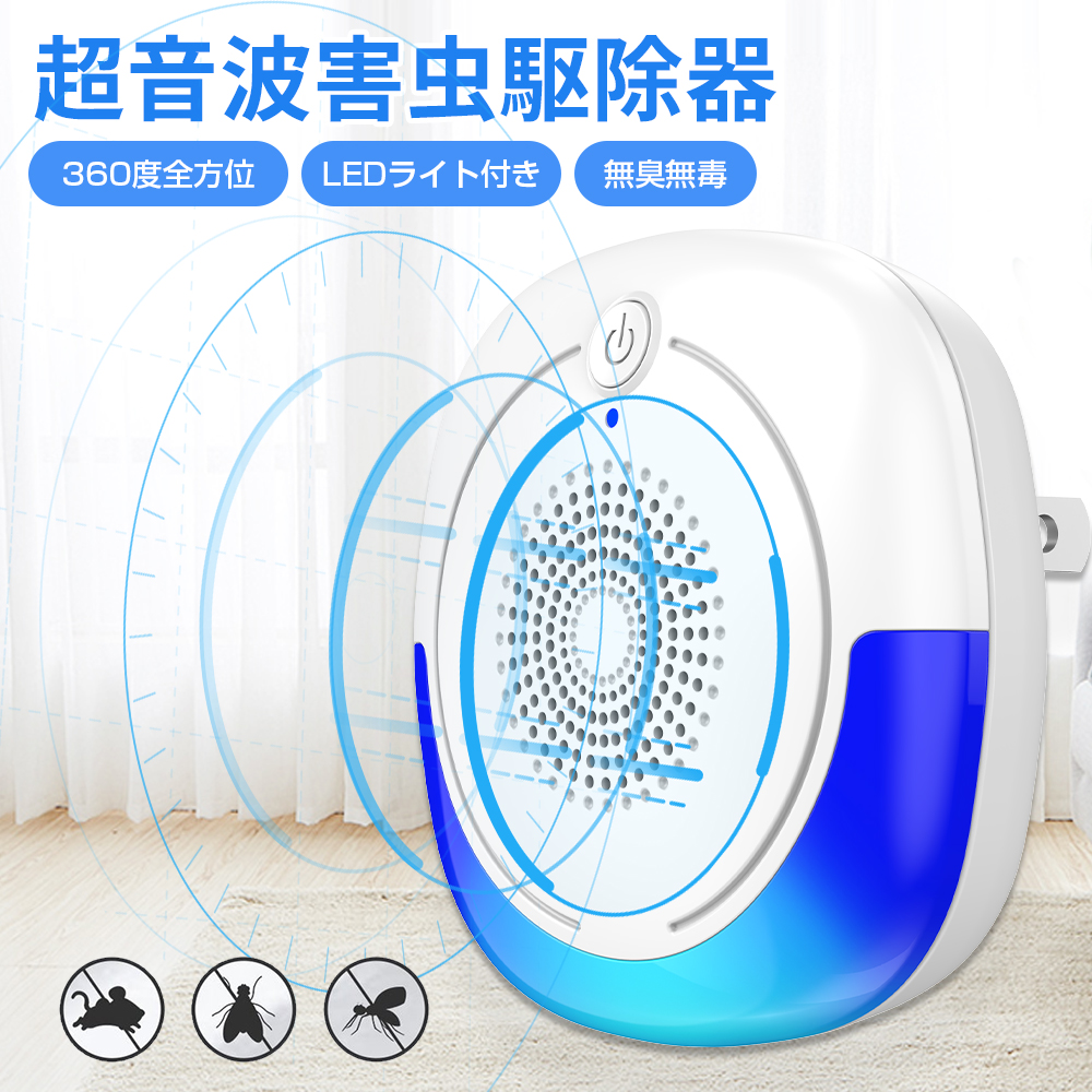 【2個セット】超音波 害虫駆除機器 虫除け ゴキブリ ハエ カメムシ ムカデ ネズミ 蚊 対策 撃退 退治 グッズ 省エネ シャットアウト 虫よけ
