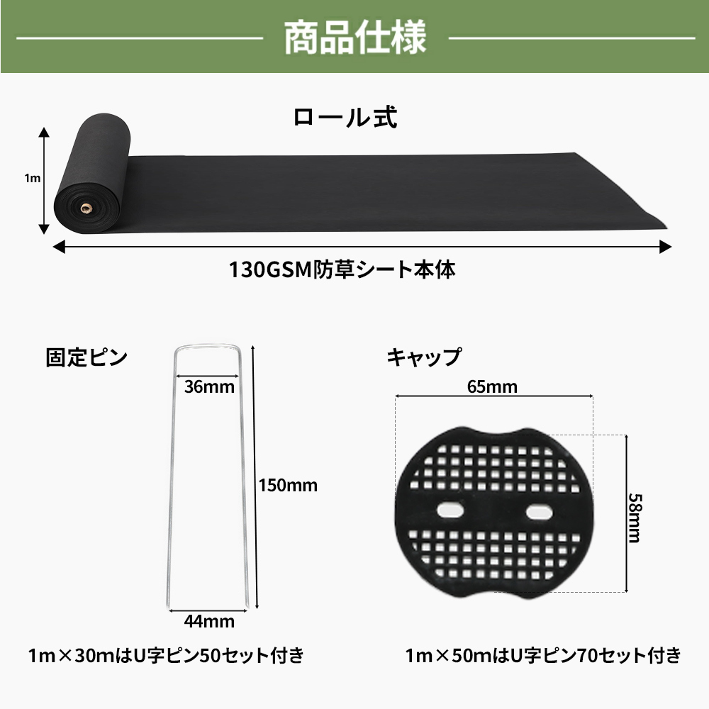 【即納】防草シート 130g 10m 20m 50m高耐久長期間敷き直し不要 除草シート 雑草シート 農作業マット草刈り不要 芝生色 DIY ガーデニング 庭 畑 雑草対策 駐車場