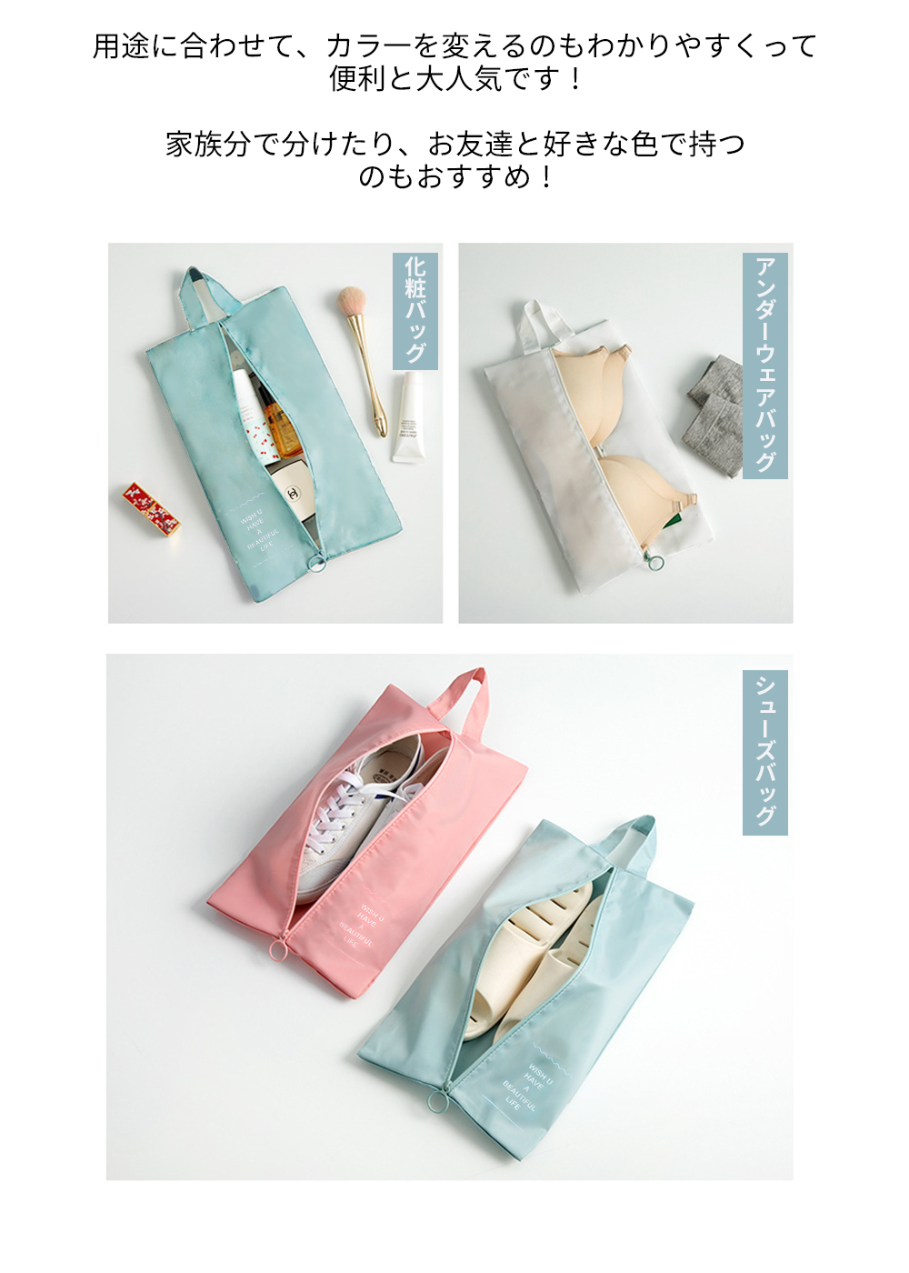 ●旅行や出張など靴を持ち運びたい時に便利なシューズバッグ、衣類や小物などを収納するのもおすすめです。上履きや体育館シューズ入れにピッタリ♪通園通学の他、習い事でもお使いいただけます。
