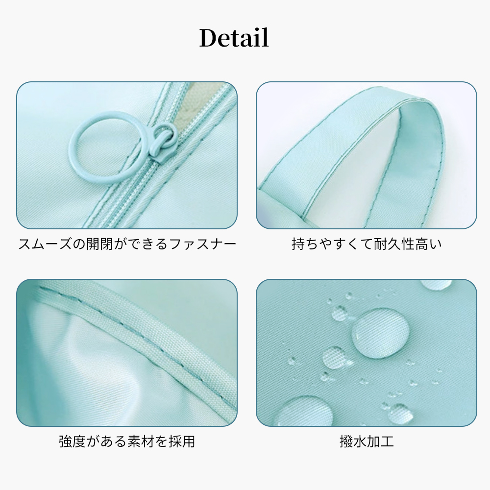 ●撥水加工のナイロン生地を使用しているので、多少の雨や汚れに耐えれます。また、ファスナー付きなので、出し入れしやすいのも嬉しいです。