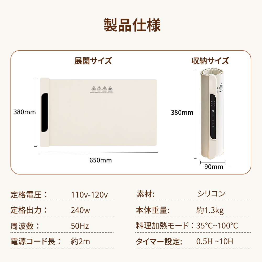 【P8倍即納】食品保温プレート ホットプレート 電気保温トレイ 折りたたみ式 3段階の温度設定 60℃/80℃/100℃ 多機能食品断熱ボード フードウォーマー 収納袋付