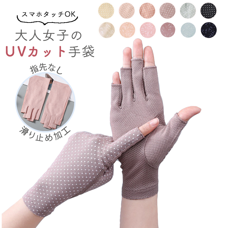 手袋 レディース UV カット 指なし ショート アームカバー ネイル ジェル スマホ 40代 50代 60代 紫外線