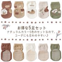 商品名:ベビー ソックス 5足セット 滑り止め付き 赤ちゃん 靴下 アニマル柄 ユニセックス くすみカラー 可愛い ギフト クリスマス プレゼント 男の子 女の子