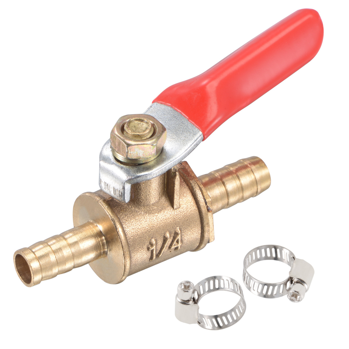 uxcell エアボールバルブ 遮断スイッチ 真ちゅう製 6 mmホースバーブ-6 mmホースバーブ クランプレッドハンドル付き