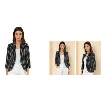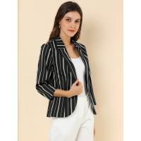 uxcell Allegra K ブレザー ストライプ柄 七分袖 前開き ショート丈 オフィスカジュアル レディース ダークブラック S