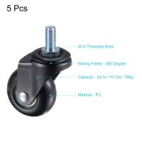 uxcell チェアキャスターホイール スイベルステムキャスター PU 50mm直径 M10ねじステム付き 家具ワークベンチ用 ブラック 5個入り