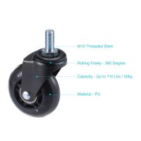 uxcell チェアキャスターホイール スイベルステムキャスター PU 65mm直径 M10ねじステム付き 家具ワークベンチ用 ブラック