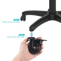 単純な2段階の組み立てプロセス: まず、古いキャスターを取付して、次に新しいキャスターをねじ込みます。