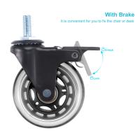 このキャスターホイールはPU製で、マーキングなしでスムーズに転がります。ボールベアリングが付属しており、360度回転でき、タイル、コンクリート、木材などのさまざまな表面で静かに動作します。キャスターにはブレーキが付いており、ブレーキを踏むと固定され、アイテムが固定されます。