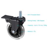 uxcell キャスターホイール スイベルステムキャスター スイベルキャスターホイール PU ブレーキ付き M10ねじステム付き ブラック