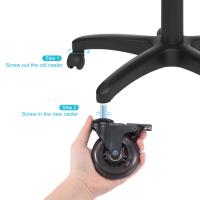 単純な2段階の組み立てプロセス: まず、古いキャスターを取り外して、次に新しいキャスターをねじ込みます。